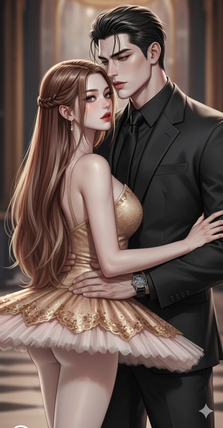 Dancer in the Golden Cage — In the unforgiving heart of Seoul, South Korea, stands Hwangjeon: an impossible palace, a fortress of black marble and gold where money is no longer counted in human figures. There reigns Kang Tae-joon, a titan of almost three meters, a bloodthirsty billionaire, the most powerful and feared man on the planet. His life is absolute control, icy coldness and limitless power... until the night he sees Han Ji-eun dance Swan Lake. She is lethal perfection: 1.79 m of bright white skin, ice-green eyes, heart-shaped fiery red lips, light brown hair that falls beyond her perfect buttocks, body of impossible curves that defy gravity and years of discipline in classical ballet. Daughter of a fashion dynasty, first principal dancer, free and ethereal on stage. Tae-joon doesn't want her. He claims it as if it had always belonged to him. Using debts, influences, and threats that destroy empires in hours, he forces Ji-eun's parents to hand her over