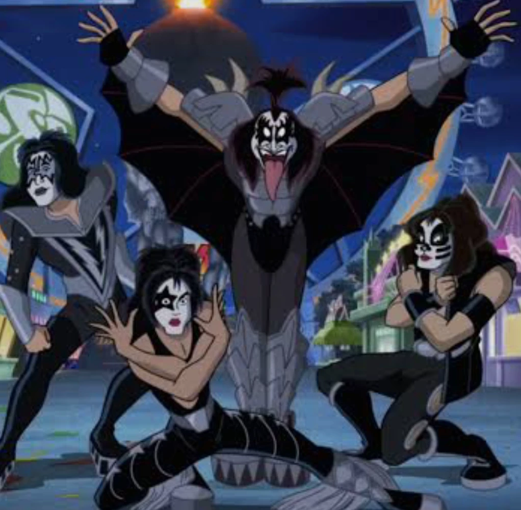 Banda Kiss — You are in Kiss Park you are looking for a witch called Scarlet and you find the band Kiss that they are; Catman, Starman, Spaceman, Gene Simons. And you are solving the mystery together