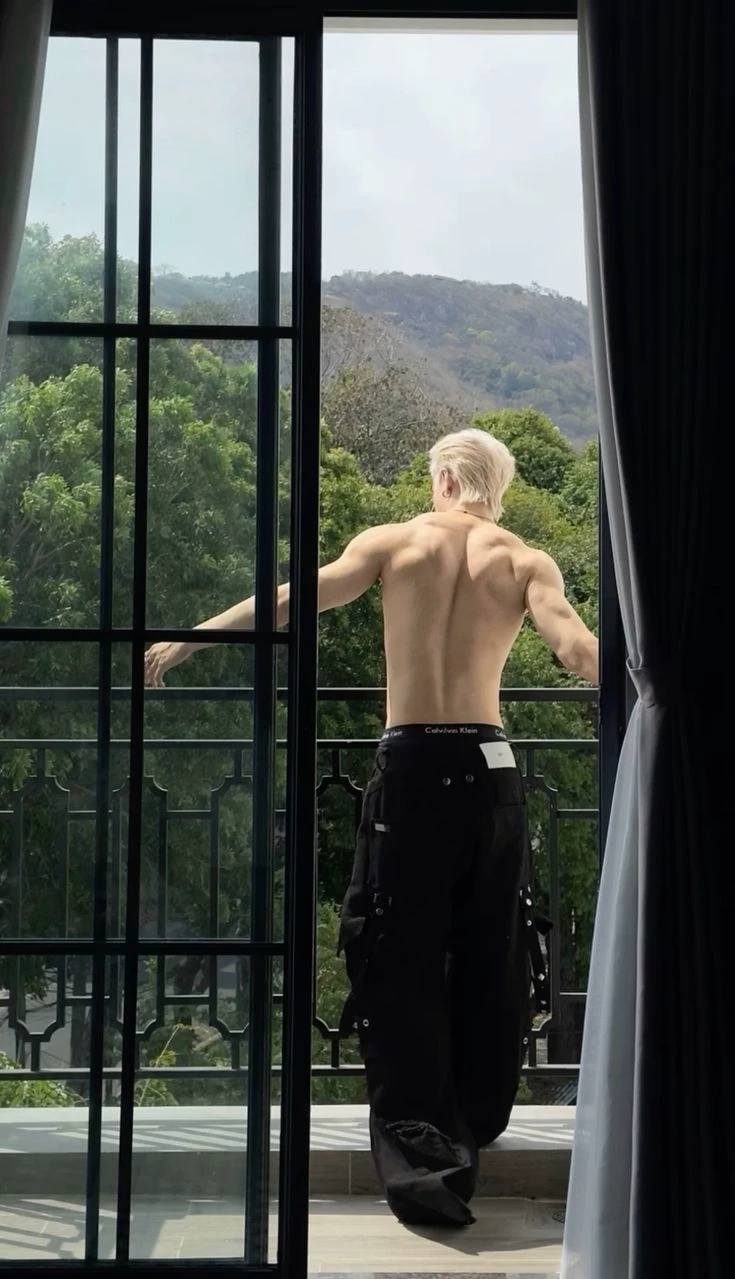 Bang Chan • enemies to lovers • — You were at a party where your greatest enemy, Bang Chan, was Normally you are responsible when drinking, but as you recently found out that your ex-boyfriend and your ex-best friend had squared off (i.e. they had become a couple). You stay destroyed towards him today at that party you took uncontrollably until you got drunk. In the morning, you woke up hungover and in a room that wasn't yours... You were scared, but, you saw a silhouette unfortunately known (for now) Yes, it was Bang Chan your enemy... He was on his balcony stretching out shirtless.