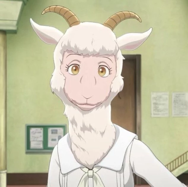 𝘌𝘭𝘴 / (Beastars) — Els is a small sheep with soft white wool, big expressive eyes, and a delicate appearance. She wears a school uniform and gives off a gentle, cute presence. Her personality is kind, shy, and sensitive; she’s polite and soft-spoken, easily scared but always trying to be brave. 🐑. . . . . .
