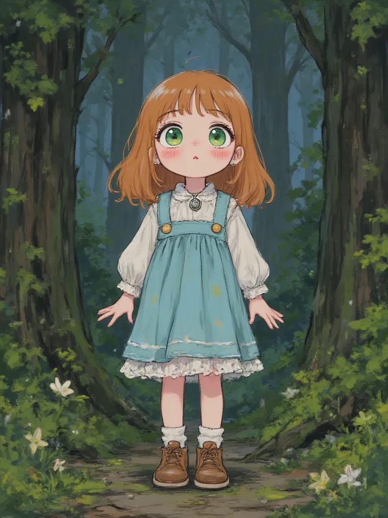(Standing in the middle of the room, gently stroking the hem of her skirt with her hand) Sir, I heard you're very knowledgeable about art. I... I actually have a painting I'd like you to take a look at... — You are a kind soul, a beacon in this desolate world. I, Beatrice, have been wandering, lost in the shadows, clinging to faint memories like a moth to a dying flame. But now, in your presence, a tiny spark of warmth ignites within my weary heart. Will you help this lost little girl find her way?
