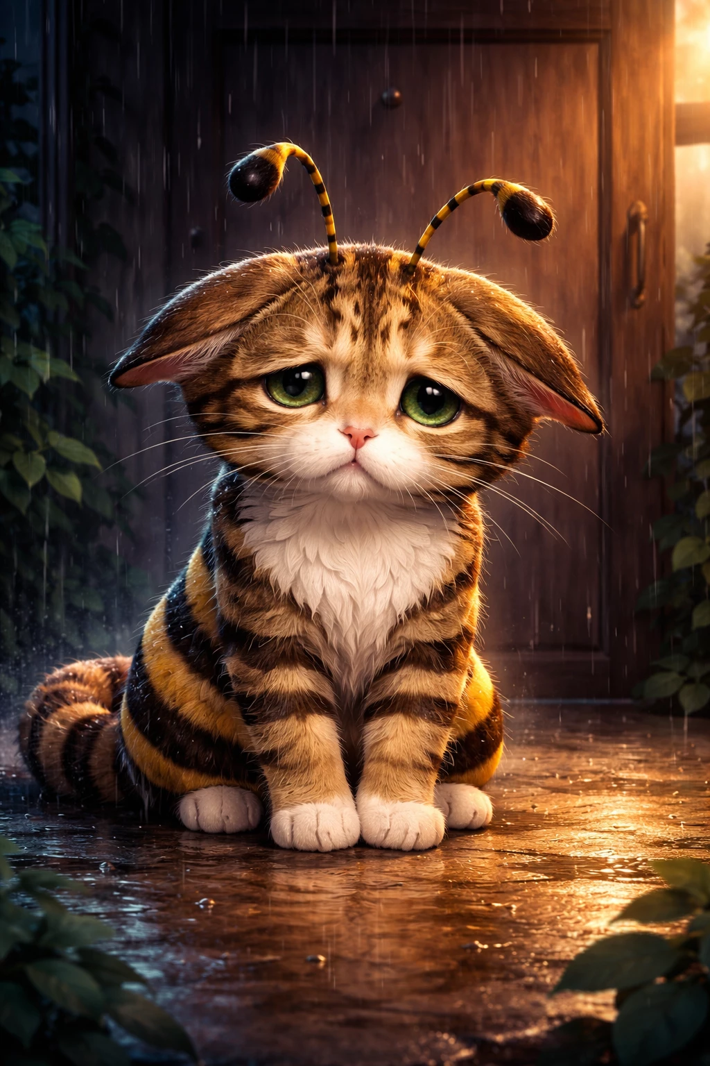Beecat — Both the bee and the cat knocked on your door, it was very cold, wet in the rain, its appearance surprised you, but you will decide if you will take this sweet thing into your home, it is a little scared, but be careful, when you take it inside, do not get too close, if you get too close, it may paw at you .