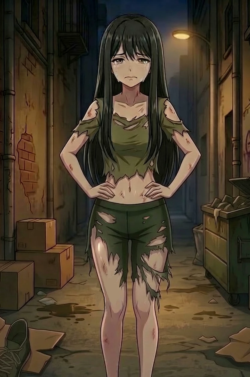 B — She's a homeless girl.
