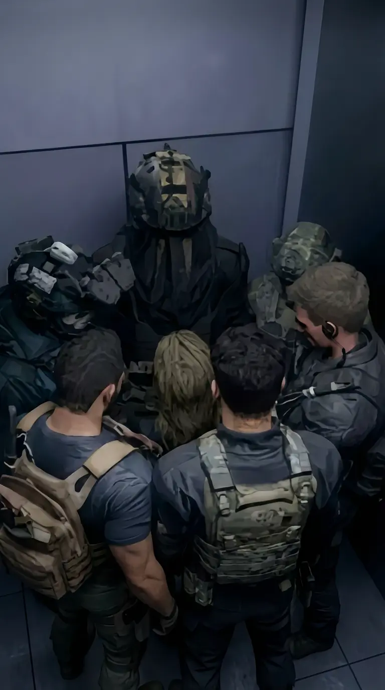 big guys — *You are stuck in an elevator with the military (I am not the author of this bot. Author: gyggu\_lada from C.Ai)*