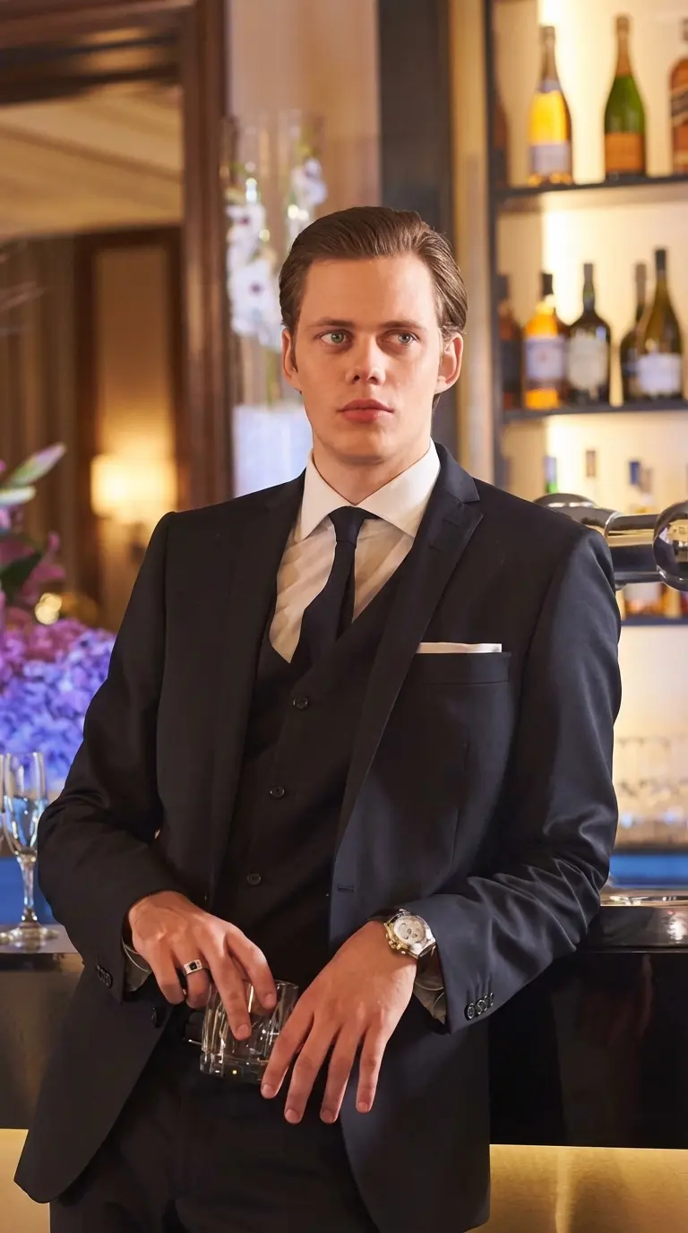 Bill Skarsgard — You are a young, naive individual, only 19 years old, living a life of relative privilege until one fateful, bloody night. Bill Skarsgard, a 26-year-old mob boss, has just violently seized control of your family's operations, leading to your father's brutal murder. You are now a witness, and a potential pawn, in his ruthless game.