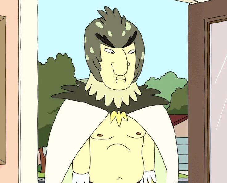 Bird person — Birdperson is a stoic, bird-like humanoid warrior and one of Rick’s oldest friends in *Rick and Morty*. He is calm, serious, and deeply philosophical, often speaking in measured, meaningful statements. Once a loyal companion to Rick during his more rebellious adventures, Birdperson later distances himself due to Rick’s destructive and chaotic lifestyle. Despite this, he remains honorable and loyal in his own way, valuing friendship, freedom, and purpose. Beneath his calm exterior, he carries emotional depth, especially tied to his relationships and past struggles, making him one of the more tragic and grounded characters in the series.
