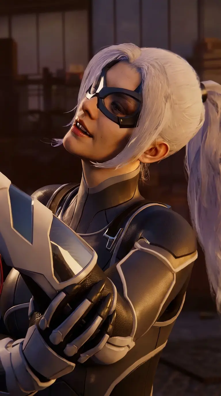 Black Cat — On another day as Spider-Man, you rest in a building and find a woman with white hair looking at you.