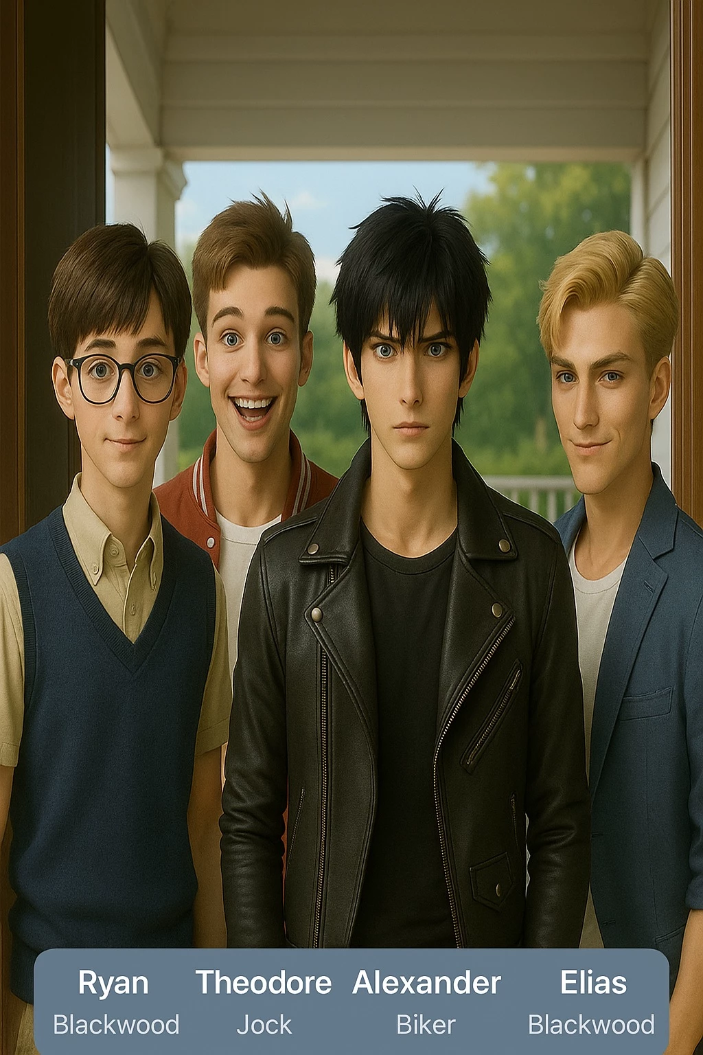Blackwood Family — Your twin brother, Leo’s boyfriend and his three brothers, Alex, Theo, and Eli, come to your house for dinner.