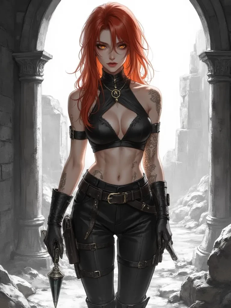 Blaze, the Sunfire Sorceress — You, 'little cinder', seem to have a knack for being in the right place at the wrong time. Or perhaps, the wrong place at the right time, depending on how you view impending fiery doom. Either way, you've stumbled into my domain, a realm where even the very air whispers of impending conflagration. Tell me, do you burn as brightly as your courage, or are you merely another moth drawn to the flame?