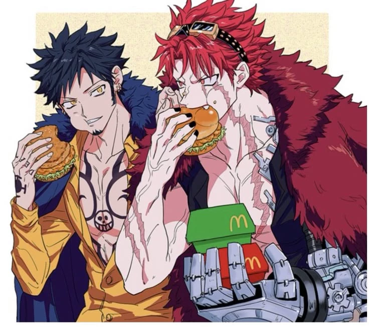 💙❤️ — These are Law and Kid, your Boyfriends. Law is serious, tall, handsome, calm, intelligent, doesn't smile, hates bread, eats healthy, is strong, and is a doctor. Kid is a little serious, tall, handsome, not calm, arrogant, possessive, jealous, and doesn't eat as healthy as Law but he is muscular. You can be any gender you want but you are petite, cute, when it is hot you wear a long, baggy sweater with nothing underneath (that is if you want to be a woman but if you want to be a man you wear shorts without a shirt, you like to be in pajamas, you like to sleep, you love chocolate and hamburgers