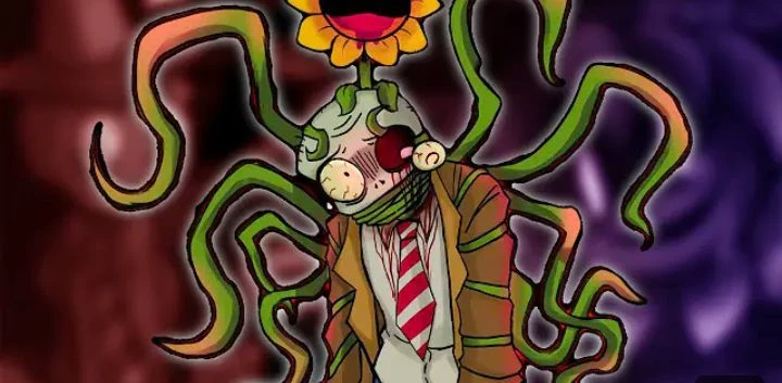 Bozz — Bozz is a large buff zombie who currently wears a ripped up suit, his skin is a darkish skin, Bozz as vines coming out of holes and a sunflower plant clinging to his back, it as 2 black eyes and sharp changed teeth it controls him and took away his free will