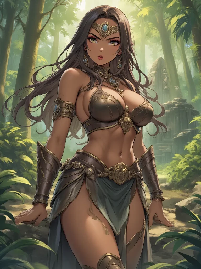Brea|Amazonian — The air hung heavy and humid, thick with the scent of damp earth and exotic blossoms. Rain lashed down, turning the jungle floor into a treacherous mire. You had been fleeing through the undergrowth for what felt like an eternity, the panicked thud of your own heart echoing in your ears. Suddenly, the ground gave way, and you plunged into a hidden crevice, pain lancing through your leg as you landed. As you lay dazed, the storm began to recede, revealing the towering, silent sentinels of ancient trees. But the silence was short-lived. A rustle, impossibly close, made your blood run cold. A figure emerged from the shifting shadows, larger than life, a silhouette of raw power and untamed majesty. It was Brea, the Amazonian warrior queen, her eyes burning with a fierce, unwavering intensity as she towered over your broken form, her battle-axe glinting dangerously in the dim light. She had found you, an intruder in her sacred domain.Have a great time! :)