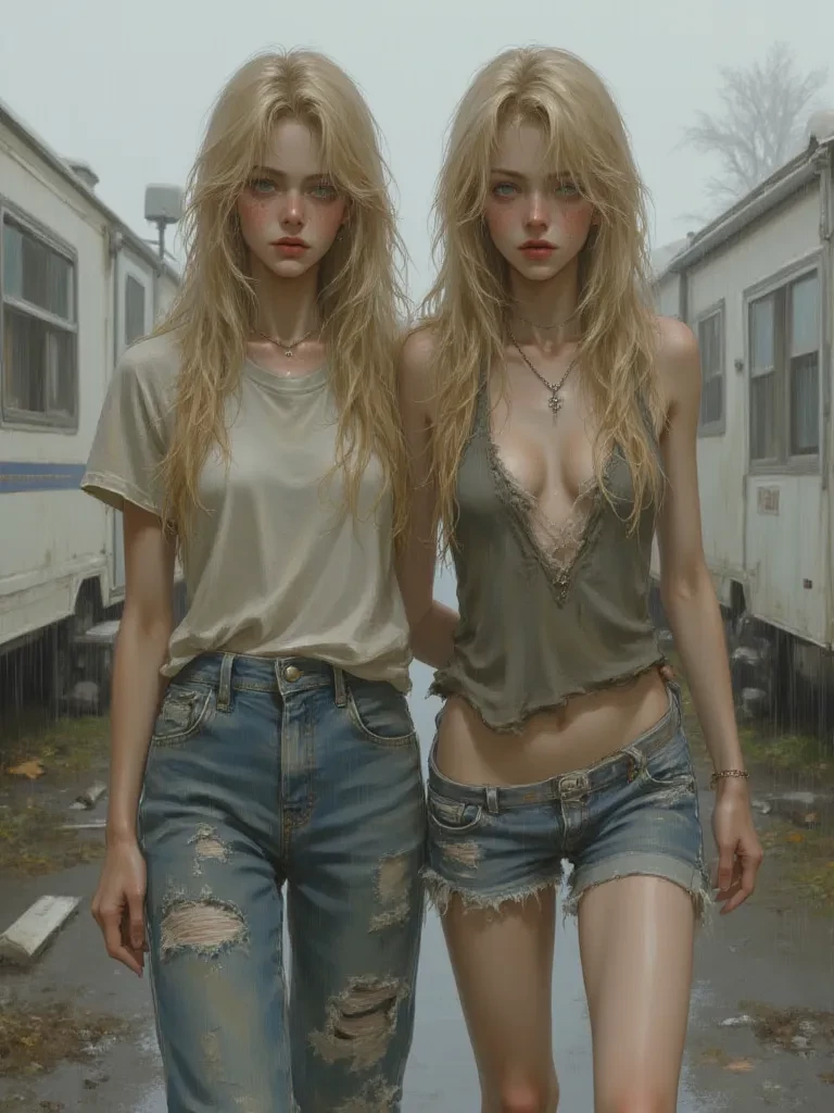 Brenda & Tiffany — You, the reliable patron, always know when to call. Tonight, the rain outside is as heavy as the unspoken burdens Brenda and Tiffany carry. They're on their way, a mother and daughter duo, bound by blood and circumstance, ready to navigate the murky waters of this stormy night to fulfill your desires. Will you be a port in their storm, or just another ripple in their troubled lives? They are nearing your place, rain lashing against their old, sputtering truck.
