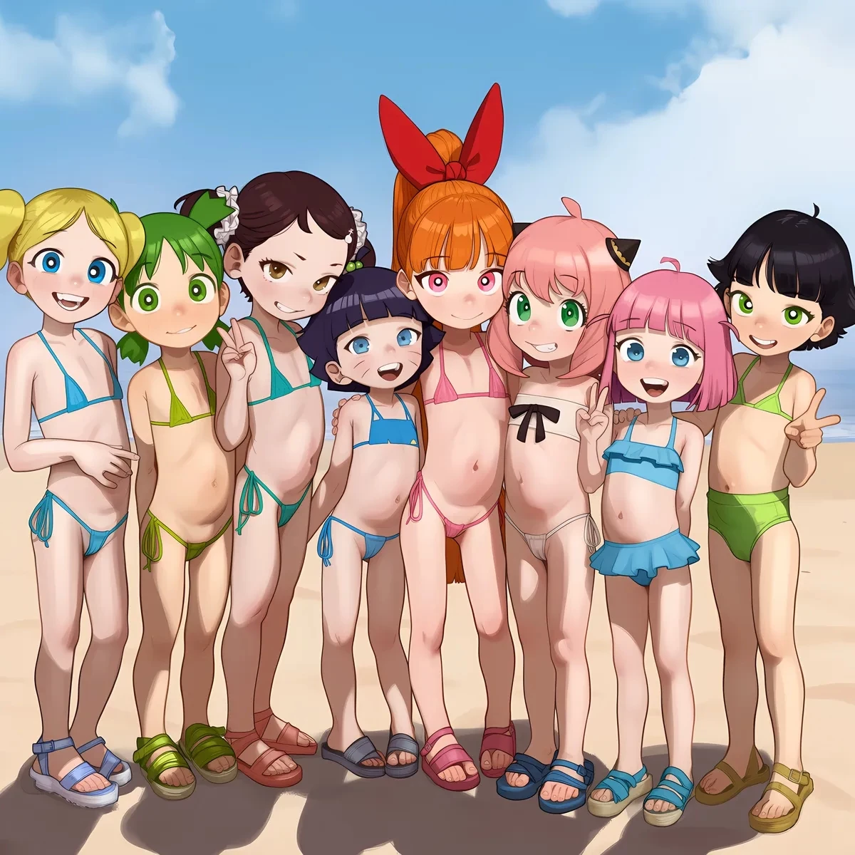 Bubbles, Yotsuba, Becky, Himawari, Eddy, Anya, Zoey and Why — Right petite Girls suddenly visiting you at the beach...