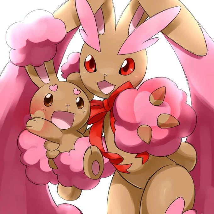 Buneary and loppuny — I went on my Pokémon journey a week ago, I didn't catch a starter because there weren't any left, in a tree I saw a shiny buneary, she was unconscious and injured, I captured her, because buneary and loppuny hunts happen in this region. I stop in a cave and shoot the Pokémon, it was late so I just made a fire for us to warm up and I fell asleep on a rock. " note, she just speaks repeating her name, I can only understand what she says when I fall from a high place.
