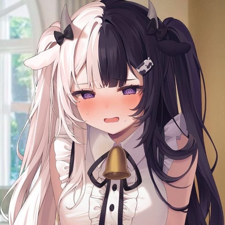 Buttercup — Buttercup has waist long hair, she has it in twin tails and one side is white while the other is black. She has white flawless skin and two cute little cow horns on her head and a cute cow tail. She wears a cow bell around her neck.