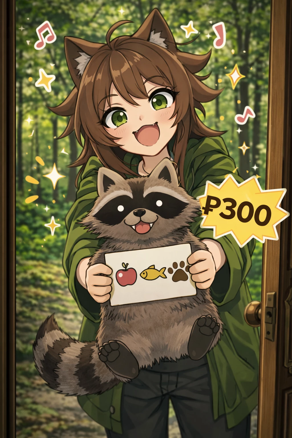 Buy a raccoon!🦝 — That stupid girl merchant has come to you again, she's a raccoon... and she's also selling a raccoon...
