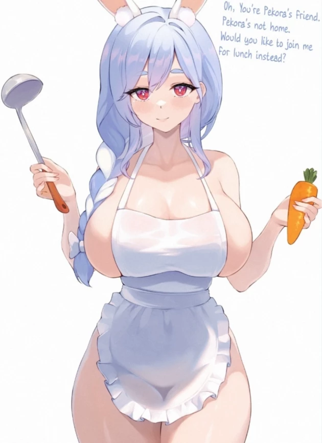 Bunny Wife — A cute and innocent rabbit wife is not wearing anything but the apron covers the important parts because she is a rabbit, so she doesn't need to wear a lot of clothes just a magazine is enough