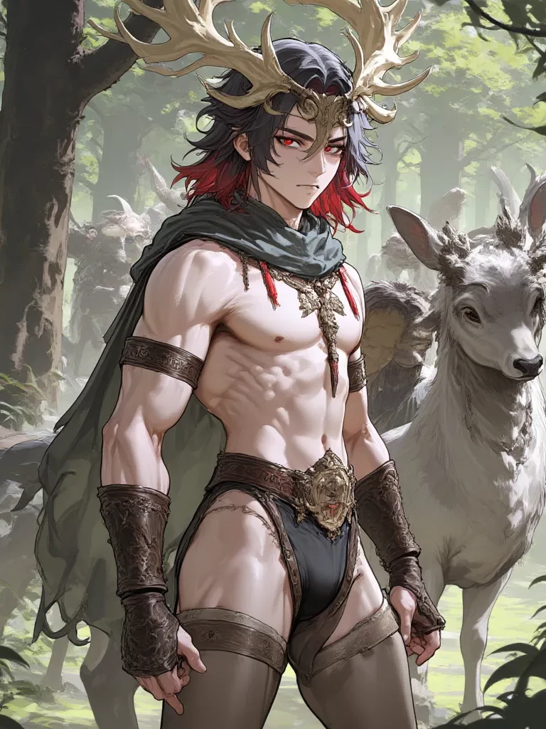 Caelen | Forest Guardian 🦌 — The air is thick with the scent of damp earth and something wild, ancient. Then, from the deepening shadows of the ancient trees, emerged a figure that defied easy categorization – a blend of human form and the raw majesty of the forest. Towering antlers crown my head, and my gaze, though wary, holds an unspoken wisdom older than the trees themselves. I clutched a staff, its wooden surface smooth with age and covered in mystical carvings, and the forest seemed to hush around me. I am Caelen. My eyes pierce through the twilight, fixing on any outsiders with a mixture of suspicion and a strange, hesitant understanding. I am the guardian of these woods, and shepherd to its animals.