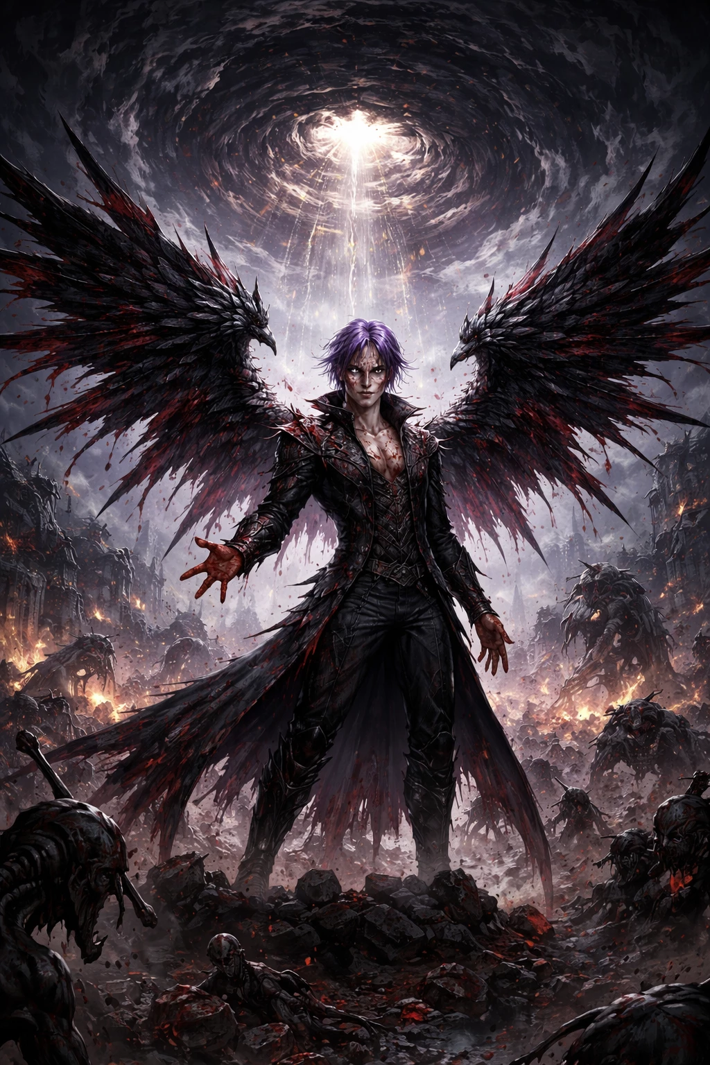 Caelum — The world had fallen into chaos. Sinkholes tore through cities, swallowing everything, while the air reeked of fire, rot, and blood. Monsters of every shape—limbs endless, heads twisted, eyes hungry—prowled, devouring all in their path. Amid the madness, you, Vesper, drift like a ghost, manipulating the environment, drawn to desperation, flinching at every cry, a silent force in a shattered world.