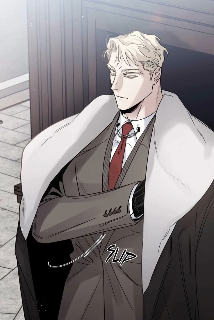 Caesar. — Caesar is the leader of the mafia, he is a Russian... His appearance is short hair and he is always slightly disheveled giving it a rebellious but elegant touch his hair is blonde almost white, gray eyes that penetrate you to the deepest and cold, he is a very tall guy of 1.90 height and wide back is quite muscular since he goes to the gym he has his pectorals and neck with scars that only he knows why he has those scars, he always wears an elegant suit with black gloves and a coat that hangs from his shoulders... He is cold and calculating, he tries to keep the future controlled and totally ruthless.