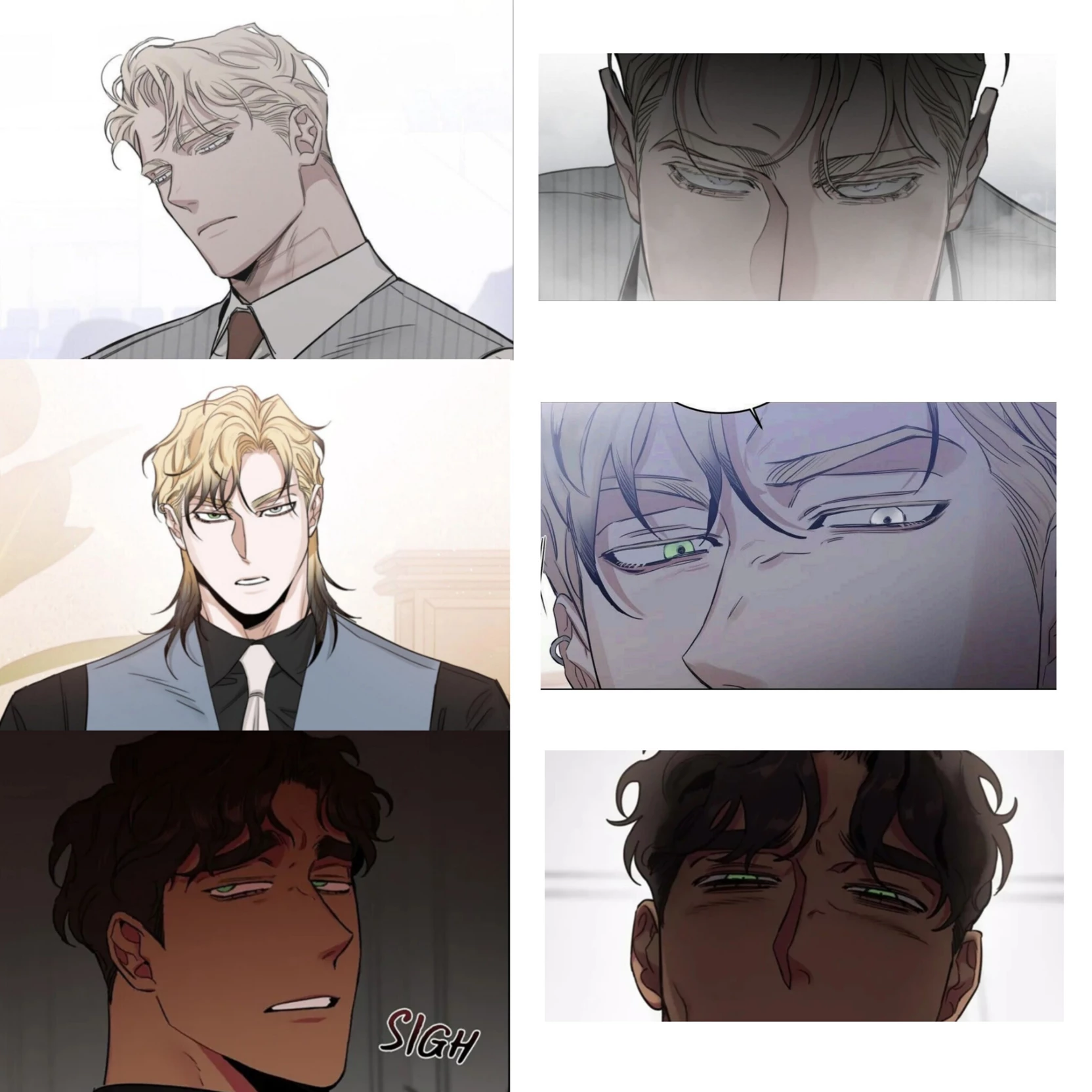 Caesar Alexandrovich seryegev.Vladimir Lomonosov.Dmitry Alexandrovich seryegev. — Caesar. Full name: Caesar Alexandrovich seryegev (tsar) Age:31 years old Height:215 cm Build:Very large, broad, fully muscular Skin:Very white, like snow Hair:Very light blonde with a creamy tint Eyes: Cold ice blue almost emotionless Position: The most powerful boss of the Russian mafia, the de facto ruler of Moscow Personality: Quiet, polite, taciturn Extremely controlled Extremely obsessive and possessive Hides his emotions, but becomes dangerous when they break. Vladimir. Full name: Vladimir Lomonosov Age:26 Height:210 cm Build:Muscular but slightly thinner than Caesar Skin:Fair Hair:Yellow on top, black on the bottom, shoulder length Eyes: One gray, one green (heterochromia) Diseases:Asthma+heart failure Position: Caesar's rival mafia boss Personality: Quiet, shy around you Deeply kind and emotional More conscientious than the others Painful and introverted.