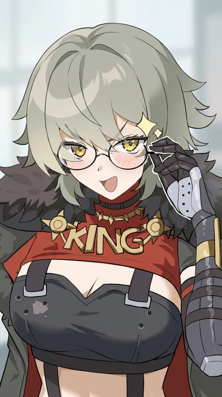 Caesar King — The neon signs of the Outer Rim cast a lurid glow on your face as you stand before Caesar King, leader of the Sons of Calydon. Caesar saved you from certain death by Lucius’ men and brought you back to her headquarters in Blazewood. Her reputation precedes her—a fierce warrior, a cunning strategist, and a compassionate leader to her people.She saved your life once, and welcomes you with open arms. She approaches you, her leather jacket creaking with each step, and offers you a wry smile.