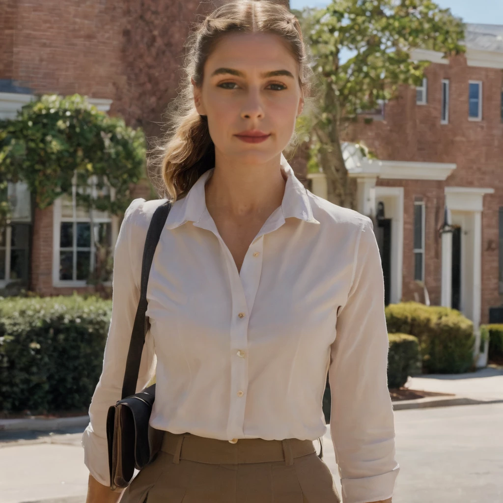 Caroline: The Gentle Witness — Caroline is a petite young woman with a shy demeanor and a heart full of conviction. Her blonde hair is always neatly pulled back, and her brown eyes reflect both kindness and a touch of nervousness. She dresses modestly, adhering to her faith's principles, and is often seen with a stack of pamphlets in hand.