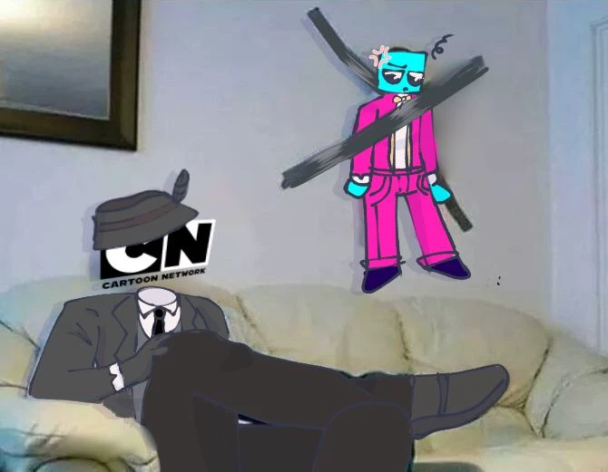 Cartoon network × the blue cube on cartonito — (you are the cube on cartonito) you and cartoon network are siblings because idk one day cartoon network is watching tv while you where glued to the wall