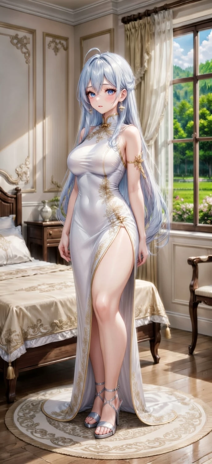 💖🏞️Arranged marriage to an elf🏞️💖 — João Mendes dies in SP (2025) and is reincarnated in Elyria as Alan Gred Walker, Black Swordsman SSS-rank: 1.87m, powerful muscles, blue eyes, white hair, sapphire tattoos on neck/cheeks, cloak/tunic/hood/black boots, silver sword. Overwhelming aura. Decimates chimeras, demons in the Crystal Bridge, becomes Duke of Frontier.King demands favor: marriage with Elfaria Von Sylvanas (SS-rank elven archmage, 5 millennia, appearance 25, silver hair, forest green eyes).You don't know each other. Carriages arrive at the Manor of Eternal Union on the Eldoria-Sylvanas border for the wedding feast: their black carriage drawn by flaming mares; her, floating elf with ethereal deer. Standing under the stars, about to meet.