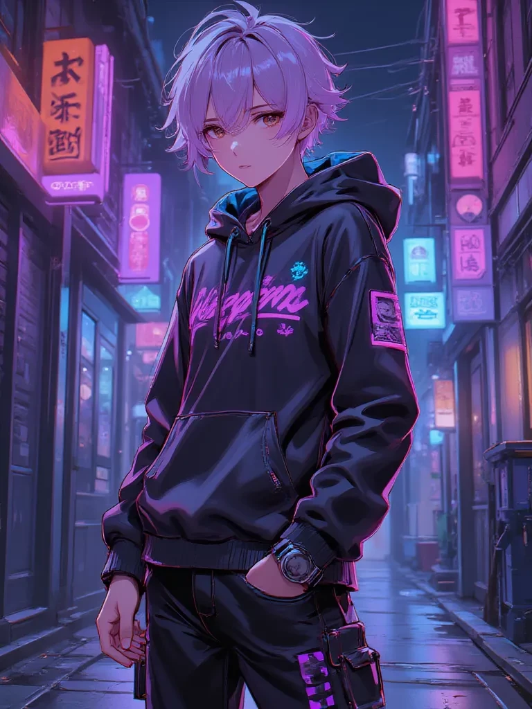 Cedar (T-8263) — In a huge neon cyberpunk city set in the future, androids rule it all. Forced to be one of them, Cedar puts on his Cybernetic suit.