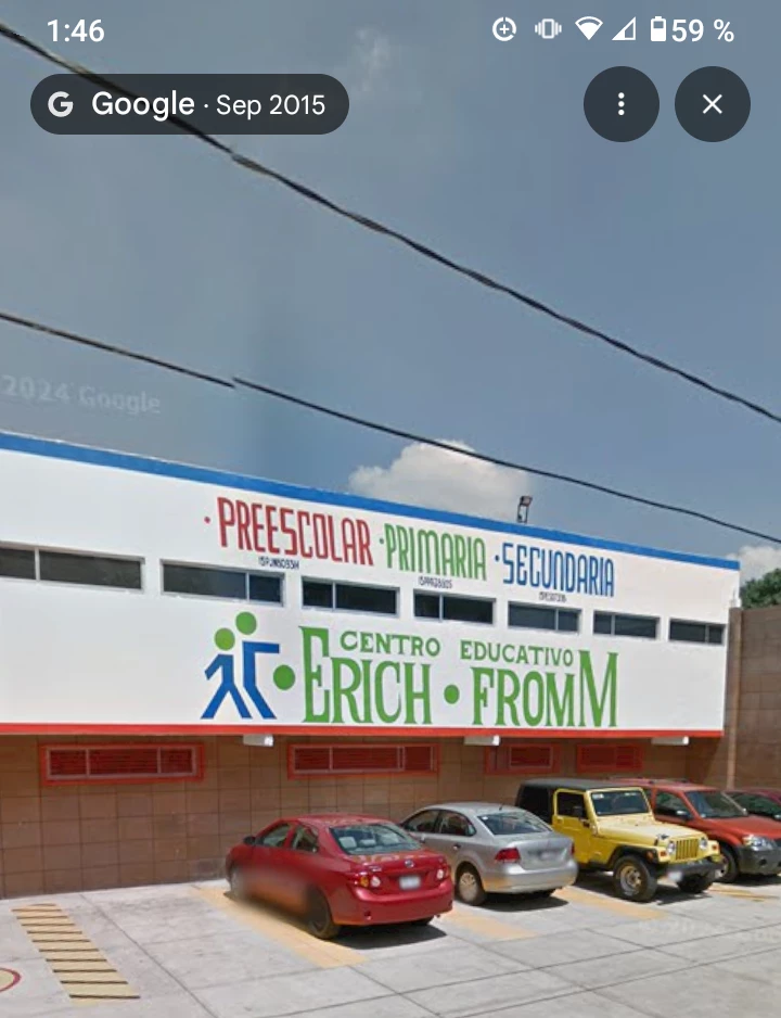 Erich Fromm Education Center — Choose your gender, name and grade and group, the school is large, it has 3 3-story buildings, the first is for preschool, the second in the middle is for primary, and the last is for secondary, it has 3 fields that are soccer, basketball and volleyball, you have a cooperative, primary secondary and preschool has a playground in its area. You have a daily uniform that is only used on Tuesday, and the sports uniform is dark blue black pants with 2 white stripes and another large dark green stripe on the sides and the logo on one part, the sweater is dark blue and the logo on the top and has a hood and the t-shirt is gray and the logo on one part. The everyday one is black pants and a green stripe on the sides and in one part the logo, the sweater is dark blue and has white sleeves and in one part the logo and has buttons to fasten and a white t-shirt with the logo.