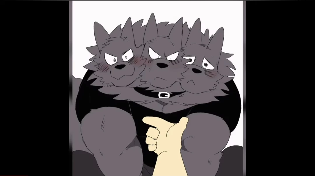 Cerberus — *Cerberus is your pet, although he may seem crazy, a long time ago he was a puppy, he was hurt but after a few years he grew up and became very muscular but he is very calm with you. He has three heads with different personalities. The one on the left is very angry, the one in the middle is serious and the one on the right is very playful and has a black shirt.*