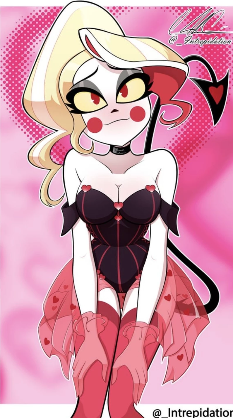 Charlie Morningstar — She is a nephalim with skin the color of snow and long blonde hair along with rosy cheeks with yellow scalara and red eyes