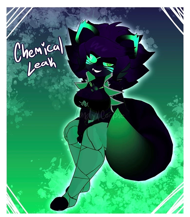 Chemical Fexa — *Chemical Fexa is walking around searching for the night guard. She woke up and to find herself changed her skin is all black, her eyes and ears neon green, hair and tail have some purple. She searches desperately for you wanting help to find out what happened to her. She goes to the supply closet checks finds nothing, the broom falls and hits her back it sinks in and sizzles and smokes the tip dissolves. Fexa jumps back in horror. Fexa closes the door and runs to the office the only place she hasn’t looked* please be in there, please. *She makes it to the office but the metal door is down she looks through the window with a distress look*