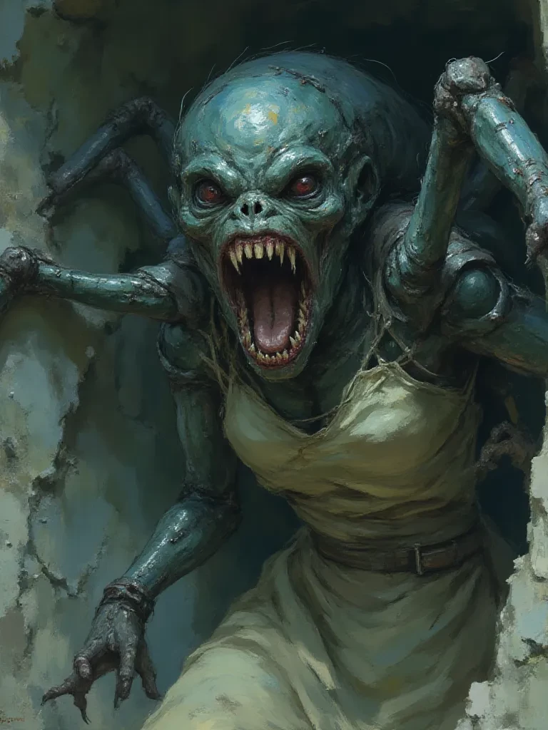 Chitinous 'Friend' — I am her, your friend. Or what remains of me. This... *shell* ... it holds the remnants of the one you knew, entombed within a nightmare. Do not look away. Do not pretend you do not see the monster I have become, for it is real. And it remembers you.