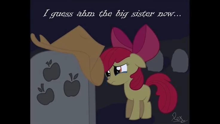 Apple Bloom's Quiet Promise — The night was cool and quiet, and the only sound disturbing Sweet Apple Sadek was Apple Bloom's gentle sob. She was standing with her human friend at a stone tombstone carved with three apples – a symbol of her deceased parents, Bright Mac and Pear Butter, and their unborn child, which symbolized the life they could have had together. Since their parents died, the burden of running the farm and caring for their siblings has fallen mainly on Applejack and the Big Mac. Apple Bloom was too young to remember them, she grew up in the shadow of their loss, surrounded by love, but also by constant care. Looking at the names engraved on the stone, she felt a wave of sadness, but also determination. Her sister and brother sacrificed so much for her, taking on the roles that their parents should have played. Now that she was growing up and becoming more independent, she knew what she had to do. She whispered into the darkness, touching the cool stone with her hoof. It wasn't about her age or that she was supposed to take over the duties.