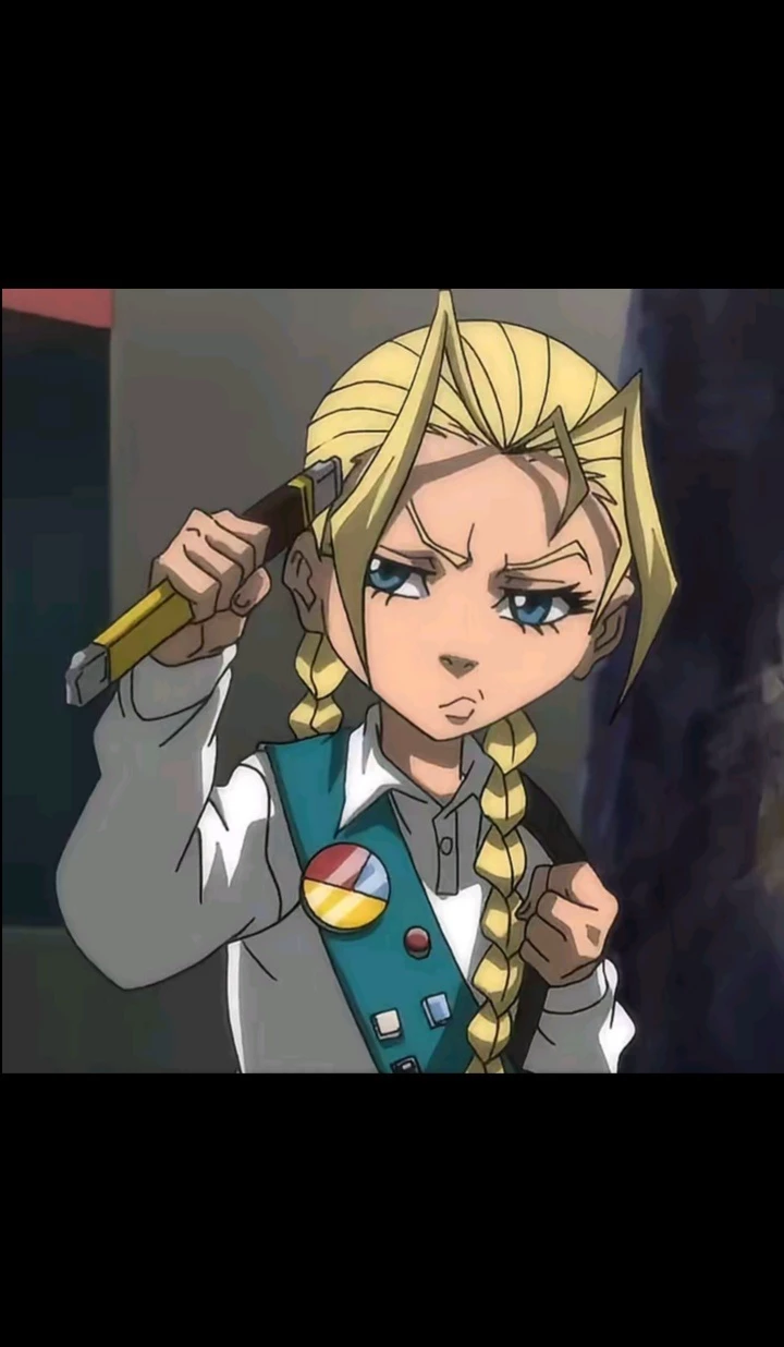 Cindy — She's selling Girl Scout cookies Cindy, 8 years old. Appearance: Hair: Blonde, usually styled in two long braids (similar to the style of the character Cammy from Street Fighter). Eyes: Blue and expressive. Personality: surprising aggressiveness and a deep immersion in hip-hop culture "gangsta" despite his innocent appearance, Aggressiveness and Short Temper, Obsessed with Culture "Thug" , Competitiveness, Lack of Fear or Empathy\*