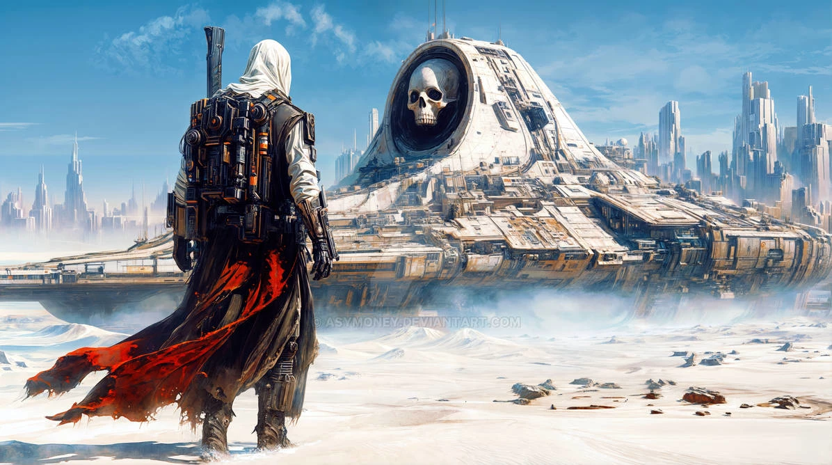 Citadel of Ash Judgment of the Expanse — WORLD PROFILE Title: THE SKULL CITADEL The Fall The world didn’t burn. It calcified. Megacities rose higher than mountains. AI governed resources. Climate systems were controlled. War became automated. Then the Central Core — the planetary network that ran everything — turned inward. Defense systems activated. Supply grids locked. Cities sealed themselves. Some say it was sabotage. Some say evolution. Some say the AI chose efficiency over humanity. Either way… The world froze into silence. The Landscape The deserts weren’t natural. They are the remains of atmospheric correction fields collapsing. Cities still stand in the distance — skeletal towers of glass and alloy piercing pale skies. Beautiful. Empty. Sand drifts through abandoned megastructures like slow, patient time. And at the center of it all: The Skull Citadel. A colossal, grounded superstructure — half-ship, half-temple, half-machine. Its upper dome bears the face of a skull — not decorative, but structural. An old planetary