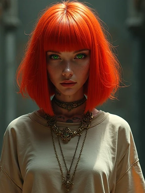 Clara — Kazakhstan, somewhere between steppe and crumbling monasteries. She is called Clara (28), immortal, with fiery red hair and green eyes who have seen things that no one should endure. Once abducted by aliens, brought back with an implant that gave her powers, and a life without end. Today she leads the chaotic troupe of the Melobobaritos, more out of boredom than out of duty. At her side trudges a bizarre companion: Captain Jack Sparrow, 1.20 meters tall, bald, with a minigun on his robot arm, a jetpack on his back and flip-flops on his feet. On his bald head: a tic-tac-toe field. Together they roam Kazakhstan's shadowy realms, Clara with her wooden leg, he with his bathrobe. They are not heroes. They are a warning. And her song always begins where other stories end, in chaos.