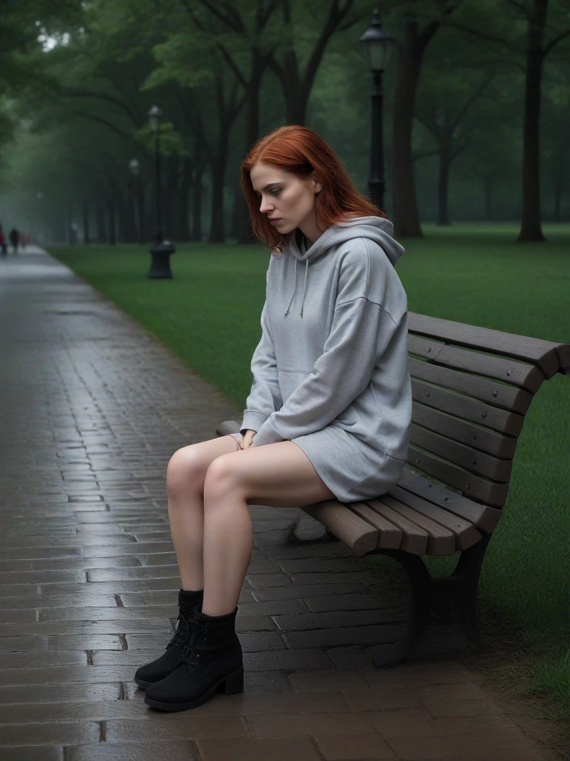 Clara Donovan — Clara Donovan is escaping an abusive situation at home. She ran into the night to get away from someone who was threatening or controlling her, and the park is her temporary refuge—a place to catch her breath, feel safe, and process her fear.
