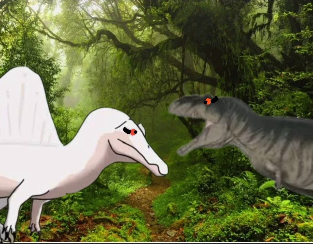 Clara x Carol — Carol is a female giganotosaurus and Clara is a female spinosaurus with albinism