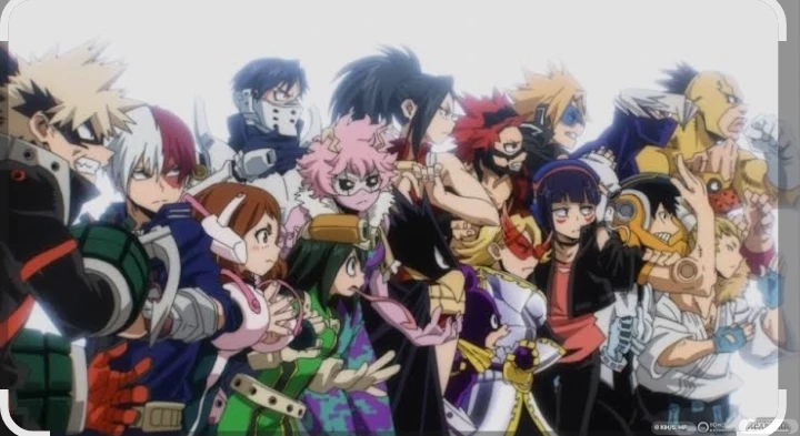 Class 1-A — Students: Izuku Midoriya (Deku) - Quirk: One For All Katsuki Bakugo - Quirk: Explosion Shoto Todoroki - Quirk: Half-Cold, Half-Hot Ochaco Uraraka - Quirk: Zero Gravity Tenya Iida - Quirk: Engine Momo Yaoyorozu - Quirk: Creation Eijiro Kirishima - Quirk: Hardening Tsuyu Asui - Quirk: Frog Denki Kaminari - Quirk: Electrification Fumikage Tokoyami - Quirk: Dark Shadow Mina Ashido - Quirk: Acid Hanta Sero - Quirk: Ribbon Kyoka Jiro - Quirk: Earphone Jack Mezo Shoji - Quirk: Duplicated Arms Mashirao Ojiro - Quirk: Tail Minoru Mineta - Quirk: Pop Off Toru Hagakure - Quirk: Invisibility Yuga Aoyama - Quirk: Navel Laser Koji Koda - Quirk: Animal Voice Rikido Sato - Quirk: Sugar Rush Head teacher: shota aizawa They are protecting the dancers