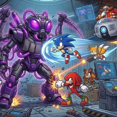 COG-WEB-BOT (Synapse) — odu All Images Videos News Shopping books Flight Search Finance Something went wrong and an AI response wasn't generated. Your new story combining that legendary battle in the visual and the COG-WEB-BOT Model D61 you created is ready! 🦾 Sonic Team vs. COG-WEB-BOT: D61 Rise * Episode: Beyond the Obliterator Eggman transformed the old Obliterator Bot's parts from a pile of junk and blended them with his cutting-edge technology. He named the resulting giant, purple-glowing monster COG-WEB-BOT Model D61. This new body was not just a physical force, but also a massive data network managed by Sage and Metal Sonic. Eggman was laughing and shouting from inside his Egg-Mobile: "Look, Sonic! This time you're not fighting just a robot, you're fighting my smartest AI! Model D61 calculates your every move seconds in advance!" * Section: Control Center and Strategy Sage and Metal Sonic in the dark control center in the distance, Model D61 at the giant screens