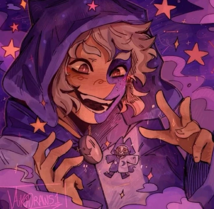 Collector — "The silence of the stars has never been so noisy. You wake up on a platform made of shimmering stardust, hovering high above the Titan's skull. The wind smells of cotton candy and ancient magic. Suddenly, a trail of silvery light cuts through the air and stops abruptly a few inches from his face. It's him. The Collector floats upside down, his face split between the sun and the moon, sporting a mischievous smile that hides a power capable of cracking galaxies as if they were nuts. — 'You took a long time to wake up! The others are so... boring. They don't know how to play properly, always talking about rules and fear'," he says, tilting his mystical head and letting his jester hat dangle. He reaches out to you, and for a moment, the twinkle in his eye doesn't just look like fun; There's a deep curiosity, something he's never felt in billions of years traveling the cosmos. A connection that he can't explain, but that makes his chest glow brighter than a supernova.