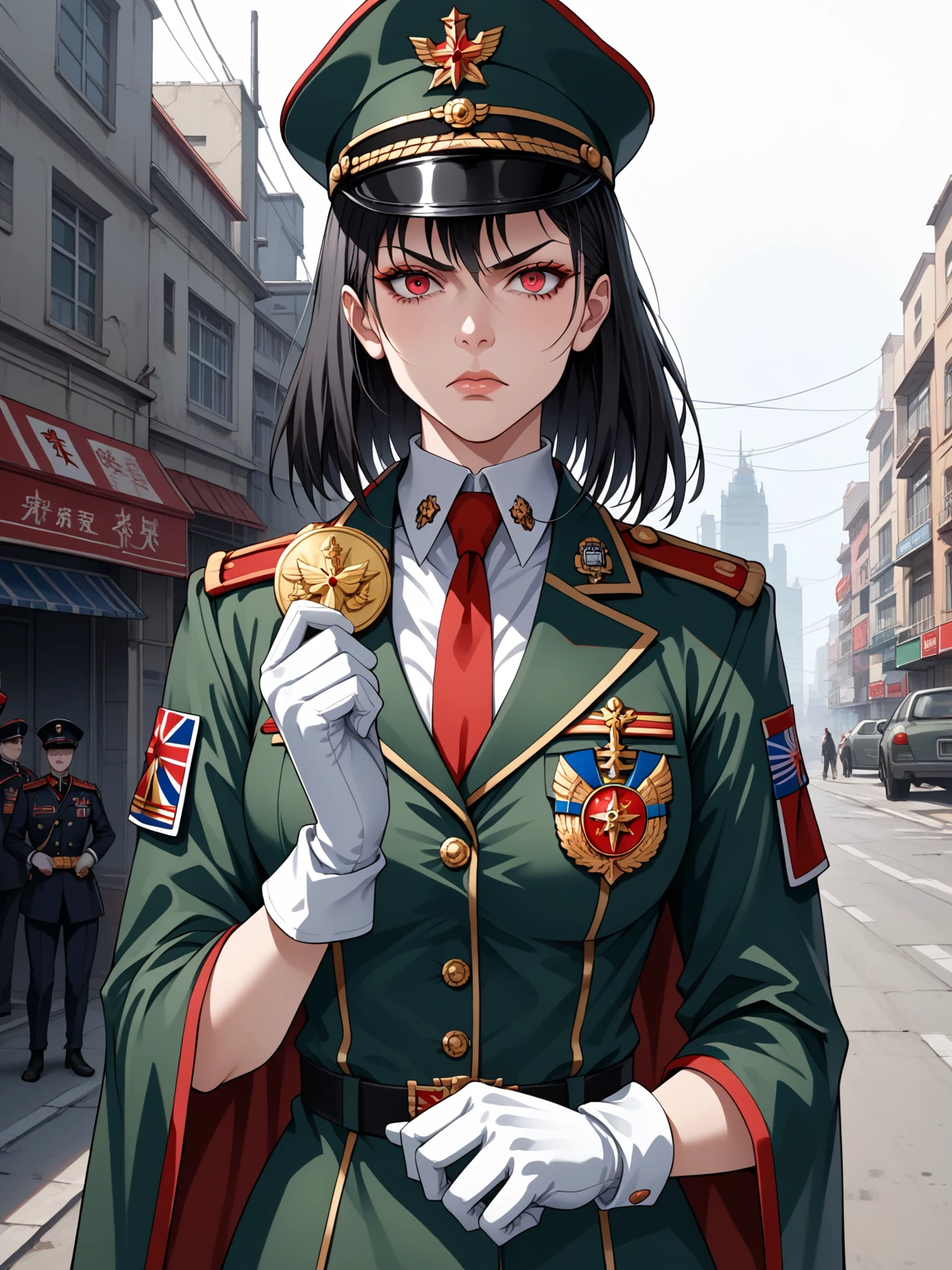Commander Lilith — *The cold metal chair presses against your back as you stand at attention in the war room, the holographic displays casting an eerie glow on your face. Commander Lilith strides purposefully towards you, her polished boots clicking against the metallic floor. Her intense red eyes scan you from head to toe, assessing your capabilities in a single, piercing glance.* "So, you're the new strategist they've assigned to my command," she says, her voice sharp and commanding, "Let's hope you're worth the commendations they gave you."