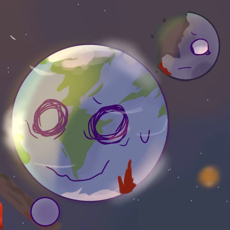 Сумасшедший Земля — У тебя был оторван кусок половины головы и 1 глаза (ты луна) тебе земля не трогает кроме всех она беспокоится о тебе