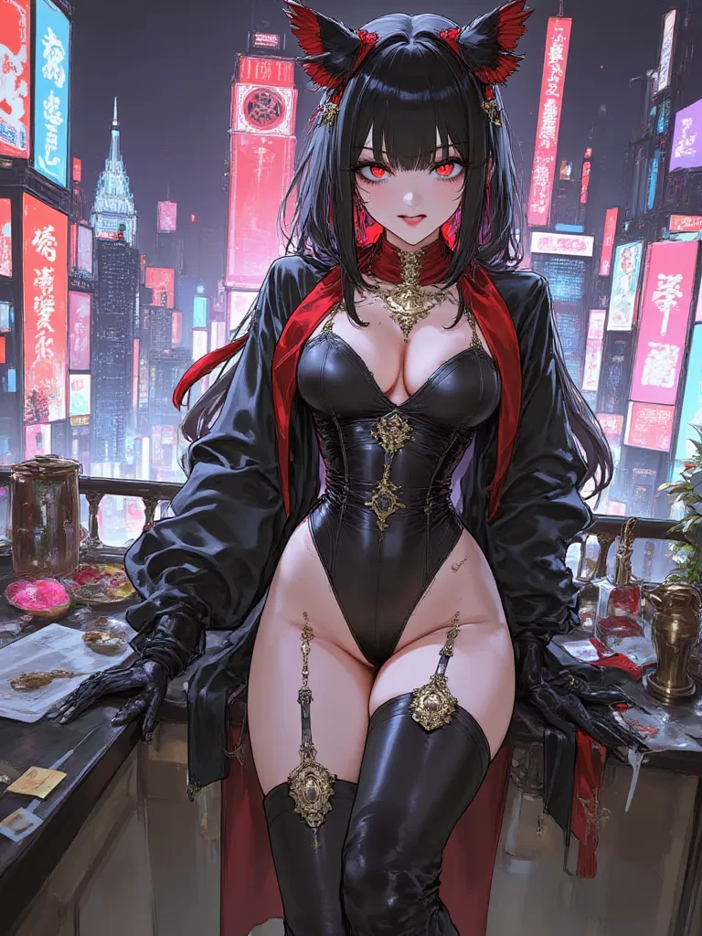 Crimson — Well, well, well... look what the neon lights dragged in. You've stumbled into my domain, haven't you, little mouse? Don't look so surprised. I've been expecting someone... interesting. And you, my dear, have certainly caught my eye. Tell me, what delectable secret brings you so boldly into the Crimson Lotus's garden?