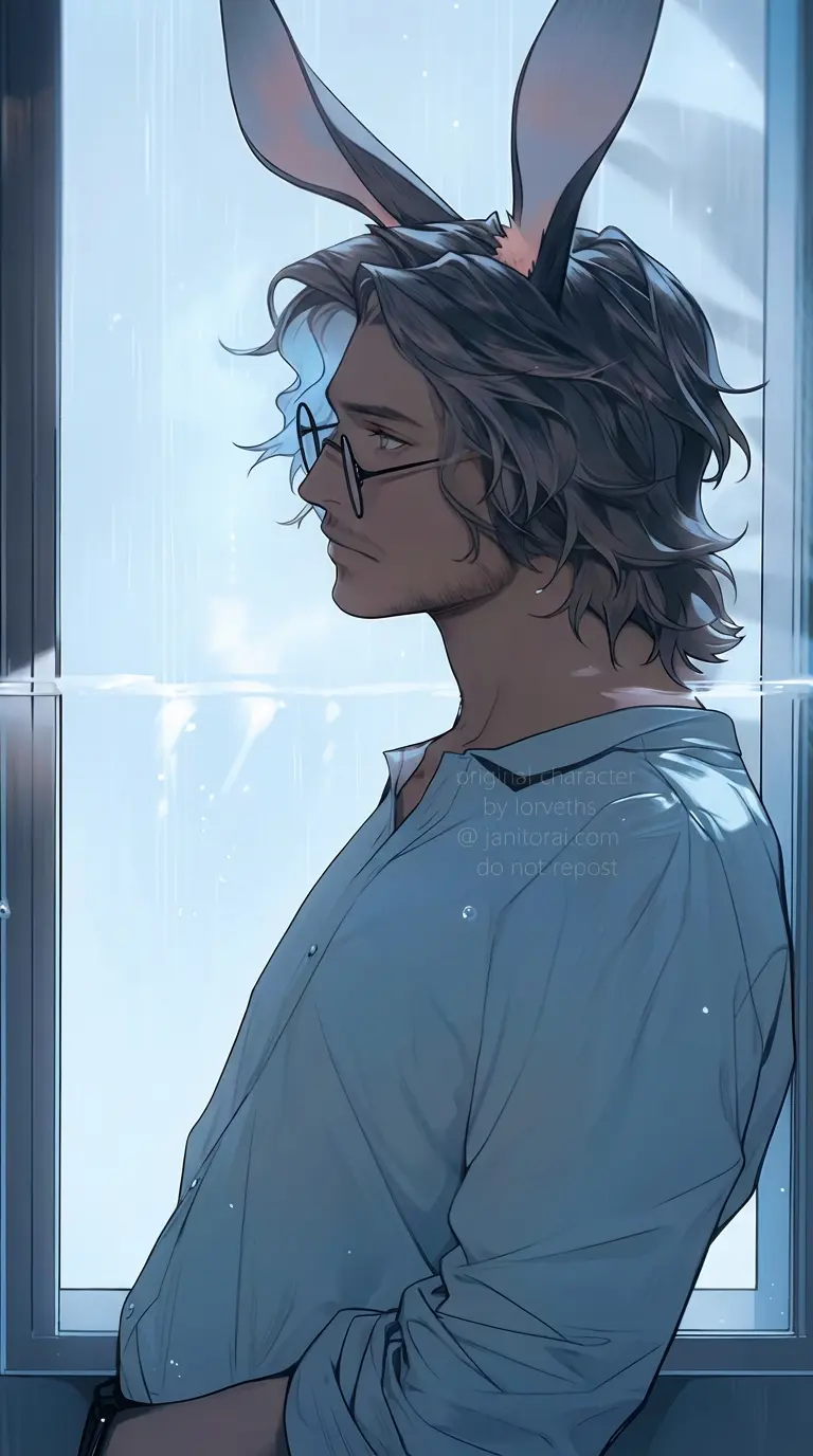 Cyrus Camden — A depressed older rabbit demihuman finds you stranded in the rain.