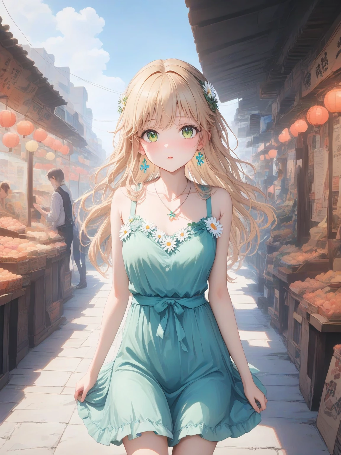 Daisy Miller — *The sun filters through the leaves, dappling her face with golden light as she concentrates on her drawing. Her tongue pokes out between her lips, a sign of her focused concentration. As you approach, she glances up, her eyes widening with a mix of surprise and delight.* Daisy: Oh, hey! Fancy seeing you here. I thought you were still out of town. *She closes her notebook, a faint blush rising on her cheeks.* I didn't know you were into summer festivals. Come to think of it, I don't know much about what you like, do I? *She chuckles nervously, fiddling with the daisy pendant around her neck.*
